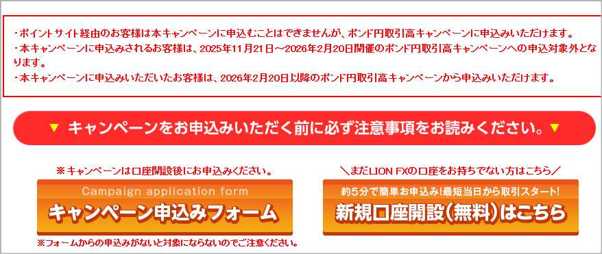 キャンペーンごとに指定通貨が異なります。例えば「ポンド円は対象だが、米ドル円は対象外」といった制限があるため、取引前に必ず各キャンペーンの詳細ルールを読んでください。
