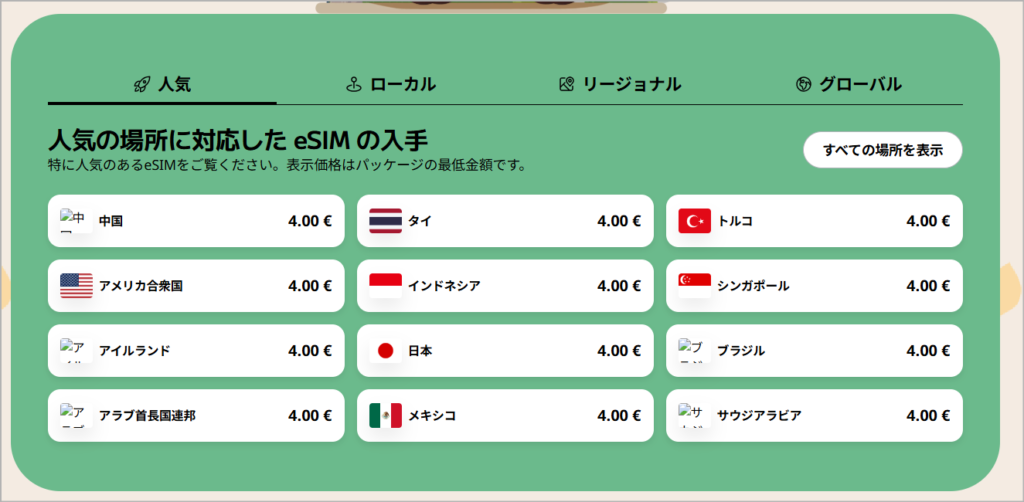 購入したいeSIMのプランを選択します。Airaloのプランは3種類に分けられます。