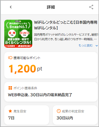 - PointChipsで「WiFiレンタルどっとこむ」の案件ページを開く