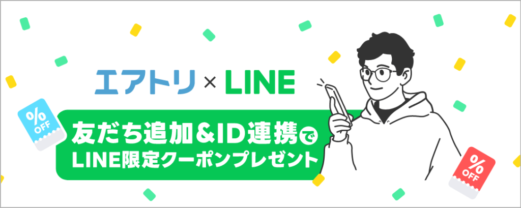 エアトリの公式LINEアカウントを友だち追加することで、LINEユーザー限定のクーポンを獲得できます。