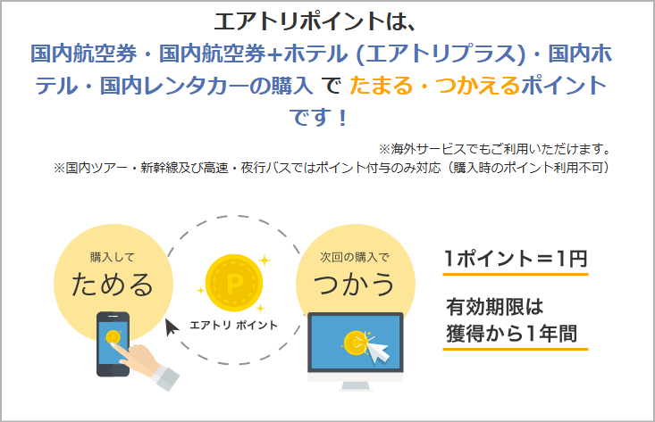 エアトリの会員になると、予約のたびに「エアトリポイント」が貯まります。