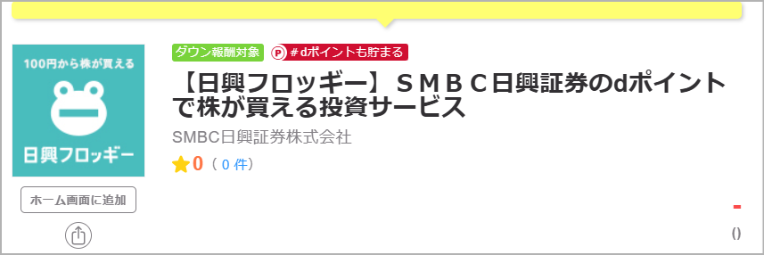 しかし2026年のいまはSMBC日興証券の口座開設ではポイントを得られません。ポイントサイトを見ると、SMBC日興証券ポイント(日興フロッギー)というページが存在するように見えますが、得られるポイントは「0」になっています。
