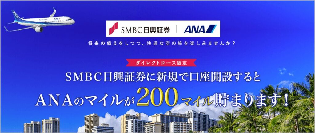 新規口座開設では200ANAマイルが貰えるキャンペーンがあります。