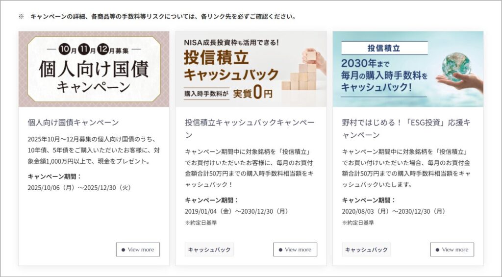 • どうしても野村證券が良い場合は、公式サイトのキャンペーンをチェックしてみましょう。